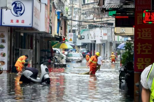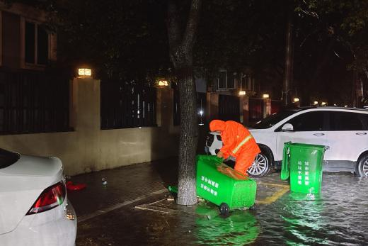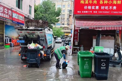 9月20日晚,龙港发布暴雨红色预警,城市防汛应急响应迅速拉响。龙港市综合行政执法局联合润亚城服,火速集结150人组成应急队伍,奔赴防汛重点区域,争分夺秒转移沿街垃圾桶至高处,避免水位上涨导致垃圾污染;同步巡查满水路段,打捞白色垃圾等“白漂”杂物,保障排水通道畅通,降低雨水滞留隐患。