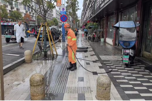 针对暴雨泥沙造成的道路泥沙堆积,出动高压清洗设备全面冲洗,高效助力城市恢复整洁有序。