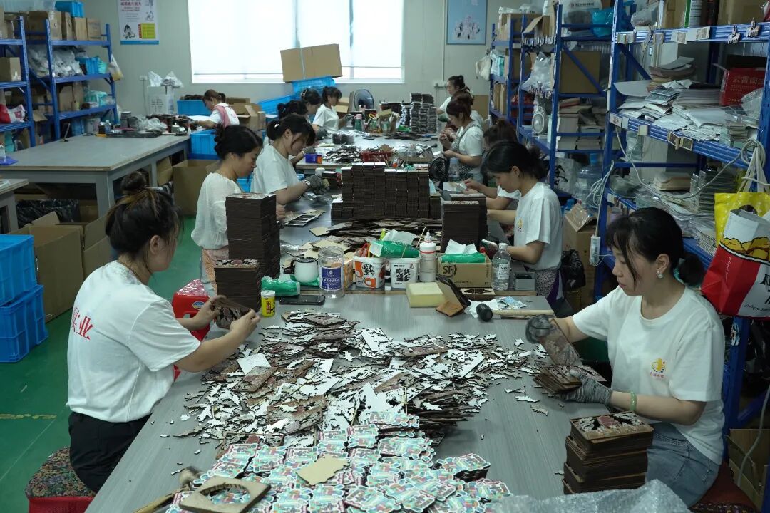 同样忙碌的还有龙港城东工业园区的浙江九福实业有限公司。在冰箱贴生产车间,100余位工人正加紧完成一批发往河北的订单。“目前订单已排到今年11月,假期我们开足马力生产。除了10月1日和中秋节两天放假外,假期其它时间工人们都坚守一线。”温州九福实业有限公司总经理梁世永表示。