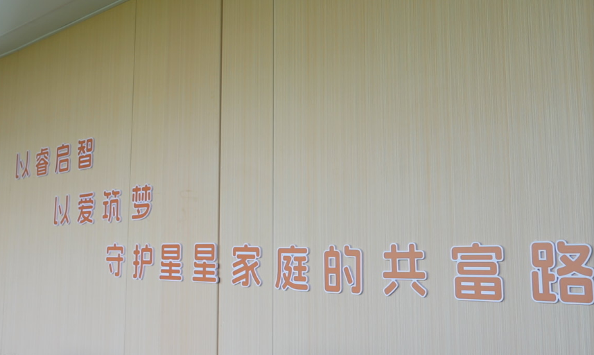 走进工坊,入口展架上摆放着“星星孩子”与家长共同创作的绘画作品;康复教室内,不时传来孩子们跟读的清脆声音,有些虽不连贯,却充满力量;另外的房间里,几位家长专注地忙碌着手头的手工活计。