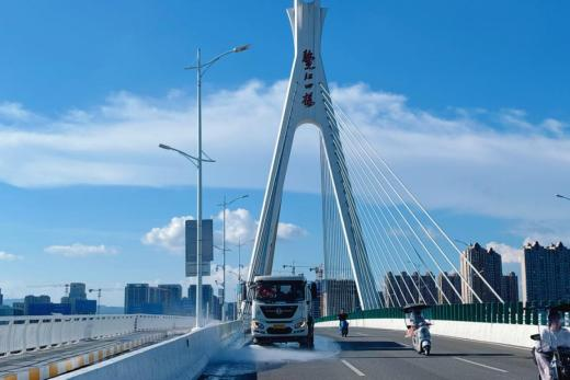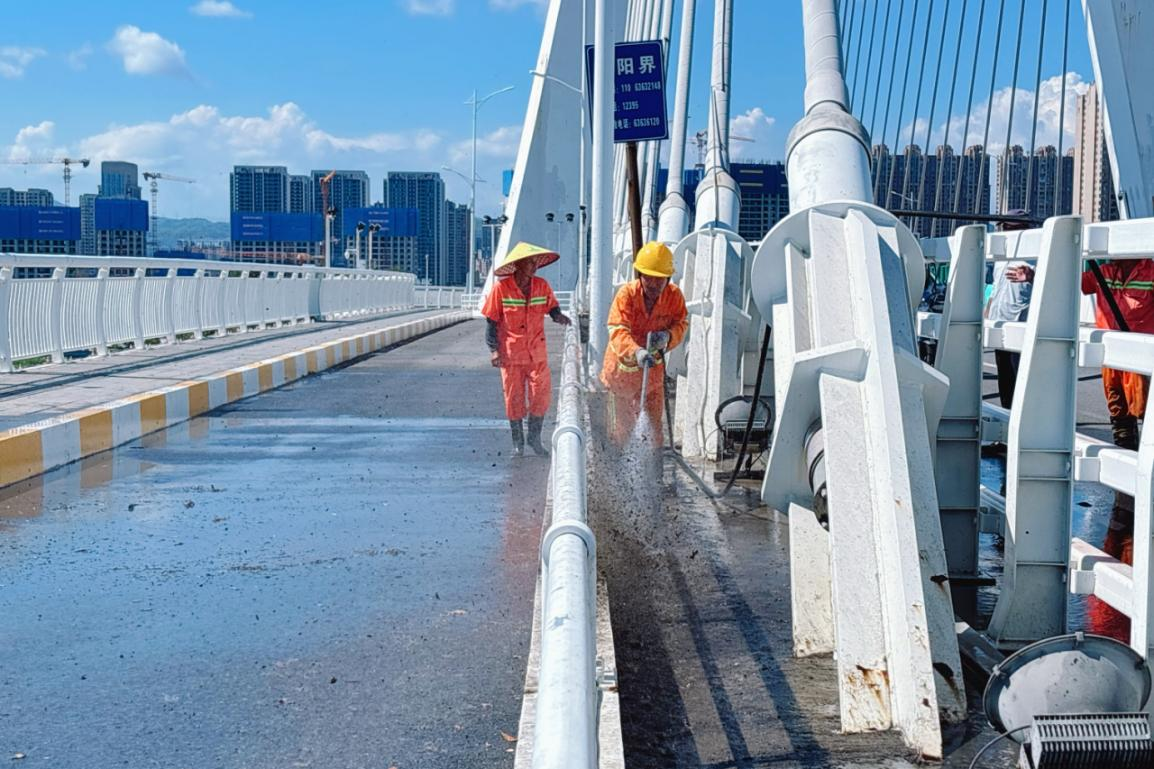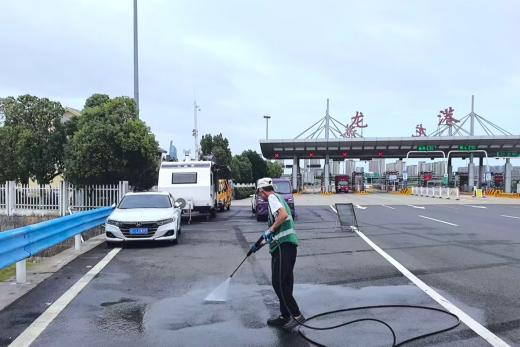 城市出入口,是龙港对外的“窗口”,也是游客与归乡人形成第一印象的关键。龙港市综合行政执法局在保障日常保洁质量的同时,集中力量对出入口进行深度冲洗作业,通过高压水枪冲洗、机械清扫与人工精细保洁相结合的方式,对路面、护栏、标识标牌等进行全面清洁,让风尘仆仆的旅客眼前一亮,也让返乡市民感受到“家”的清新与亲切。